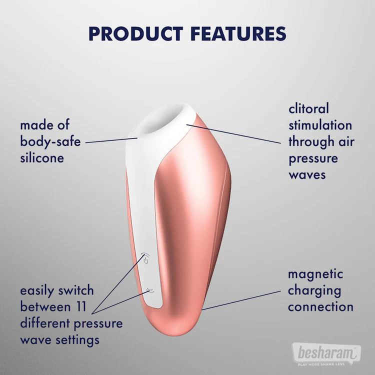 The Satisfyer Love Breeze Suction Massager is a sleek and innovative pleasure device designed to deliver intense, touch-free stimulation. Featuring air-pulse technology, it provides gentle yet powerful suction sensations on the most sensitive areas, creating waves of pleasure like never before. Its ergonomic, compact, and travel-friendly design makes it perfect for discreet pleasure anytime, anywhere.